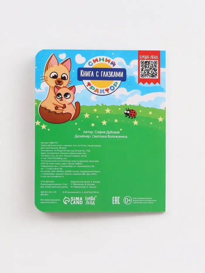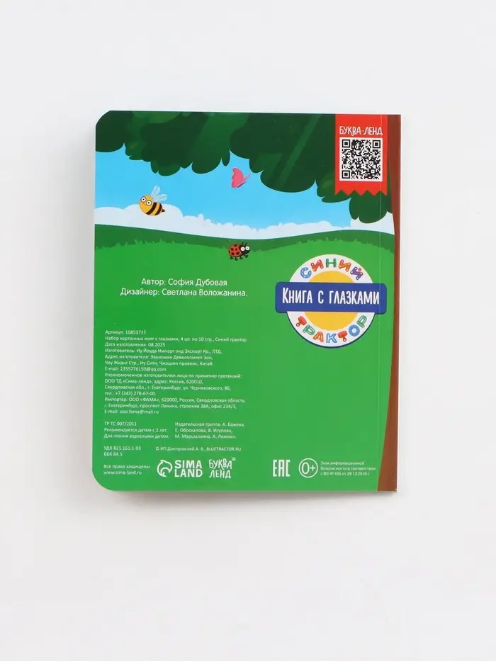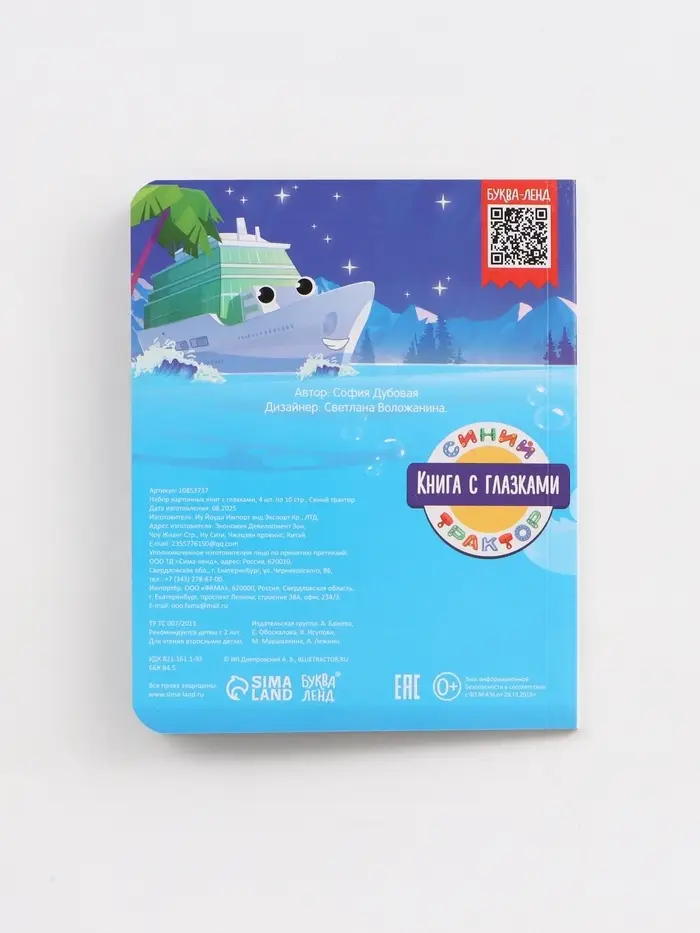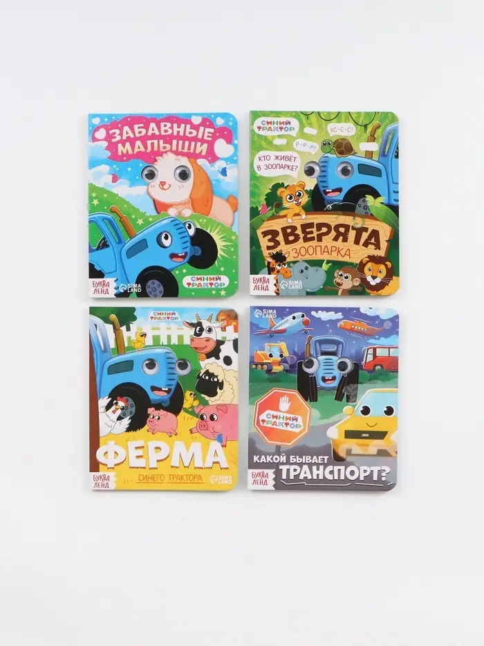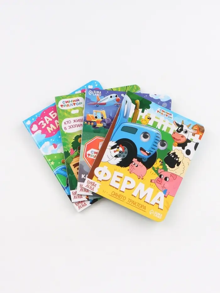 Набор картонных книг с глазками, 4 шт по 10 стр., Синий трактор