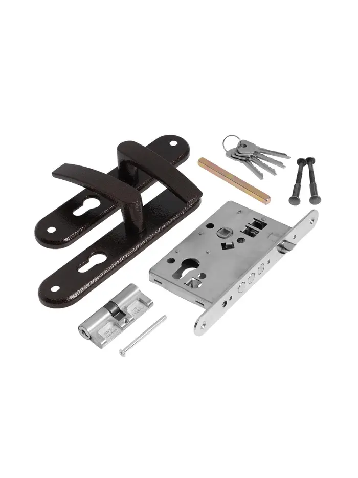 Замок врезной LOCKLAND RD005, с ручкой, B/S 55 мм, 4 ключа, цвет коричневый