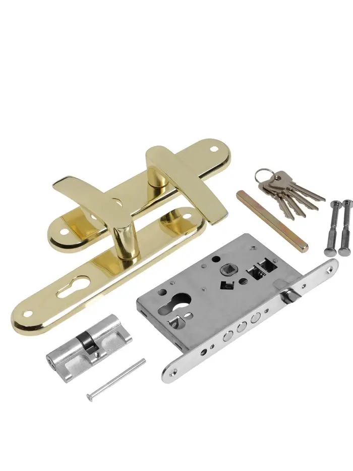 Замок врезной LOCKLAND RD005, с ручкой, B/S 55 мм, 4 ключа, цвет золото