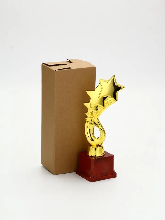 Наградная фигура "4 звезды" на красной подставке КОРОБКА