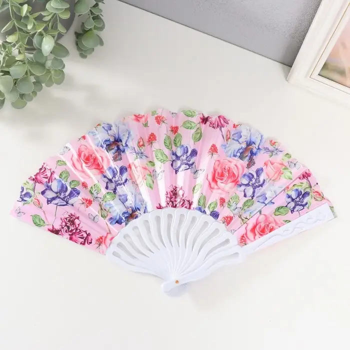 Веер пластик, текстиль "Розы" МИКС 23 см