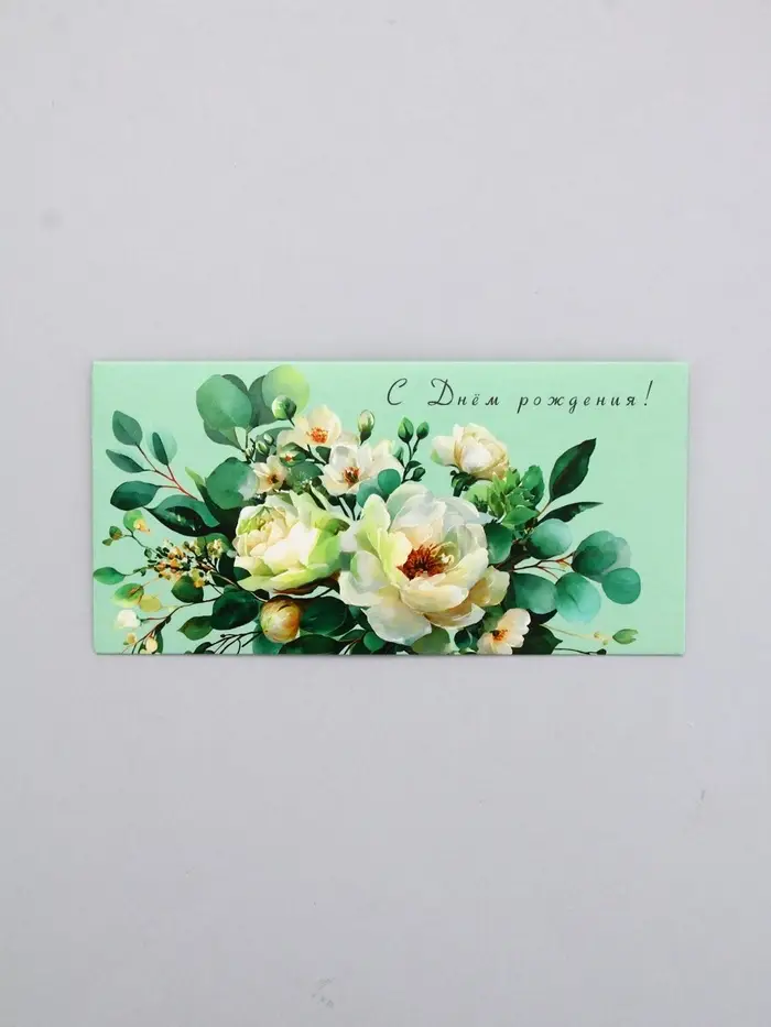 Конверт для денег «С Днем Рождения!», белые цветы, 16,5 х 8 см