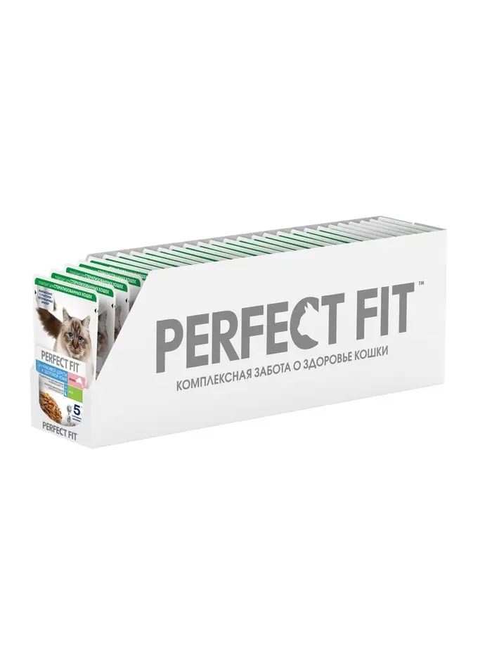 Влажный корм для кошек Perfect Fit "Красивая шерсть, здоровая кожа", 75 г, лосось, пауч