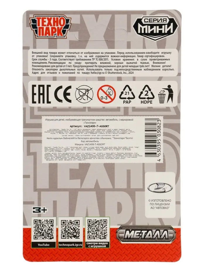 Машина металл vaz 2114 + 2106 7,5 см VAZ1406-7-ASSORT