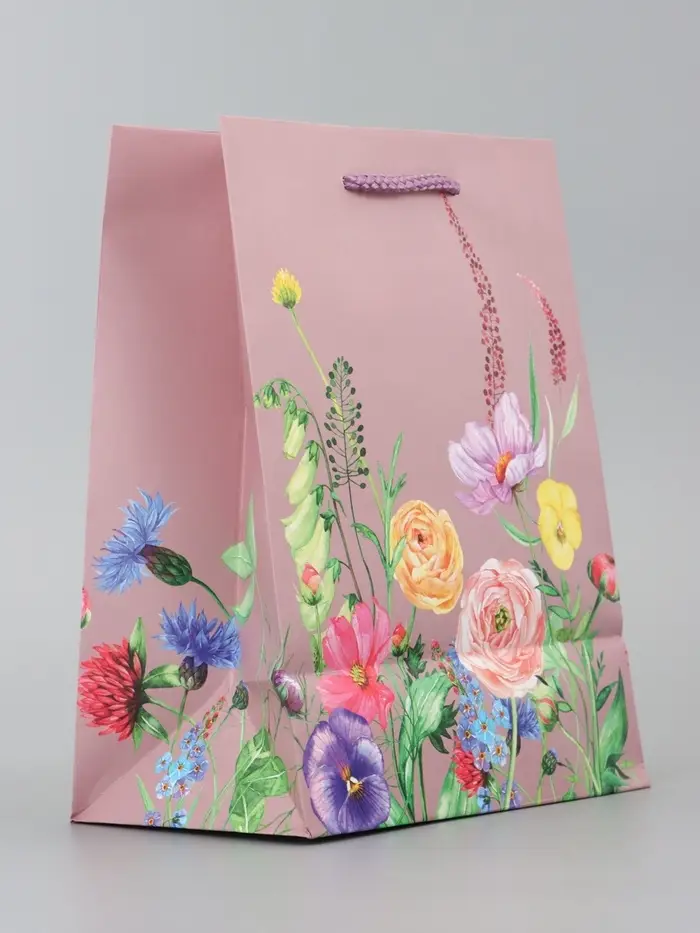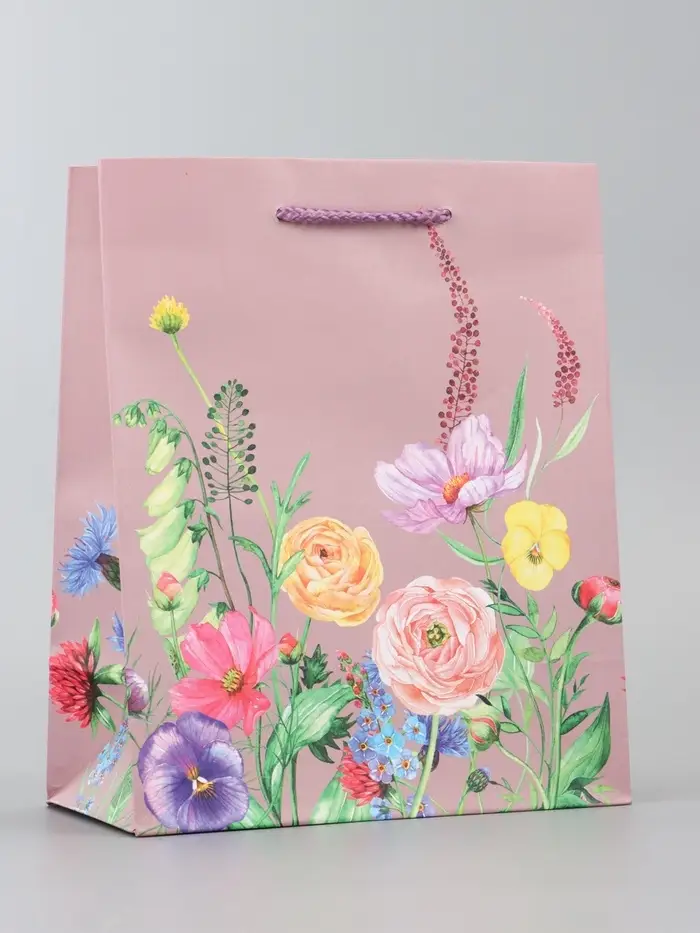 Пакет подарочный ламинированный, "Цветочный узор" 18 х 22,3 х 10 см
