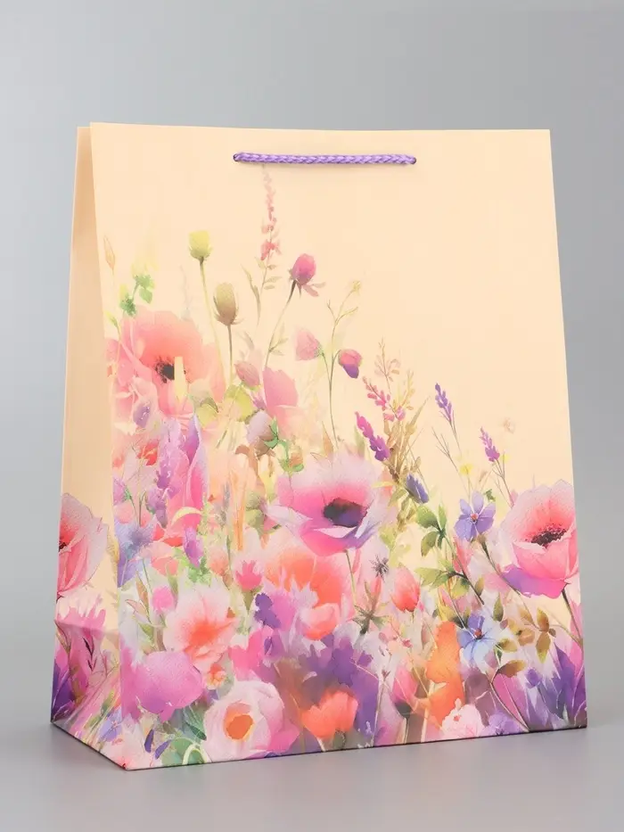 Пакет подарочный ламинированный, "Прогулка по лугу" 26 х 12 х 32 см