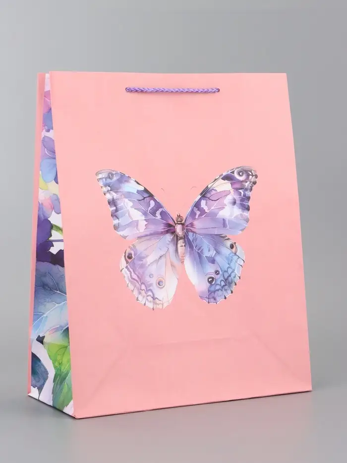 Пакет подарочный ламинированный, "Портрет бабочки" 26 х 12 х 32 см