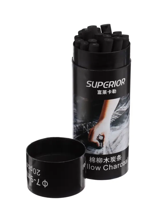 Уголь натуральный 20 штук, d=7-9 мм, в картонном тубусе, черный