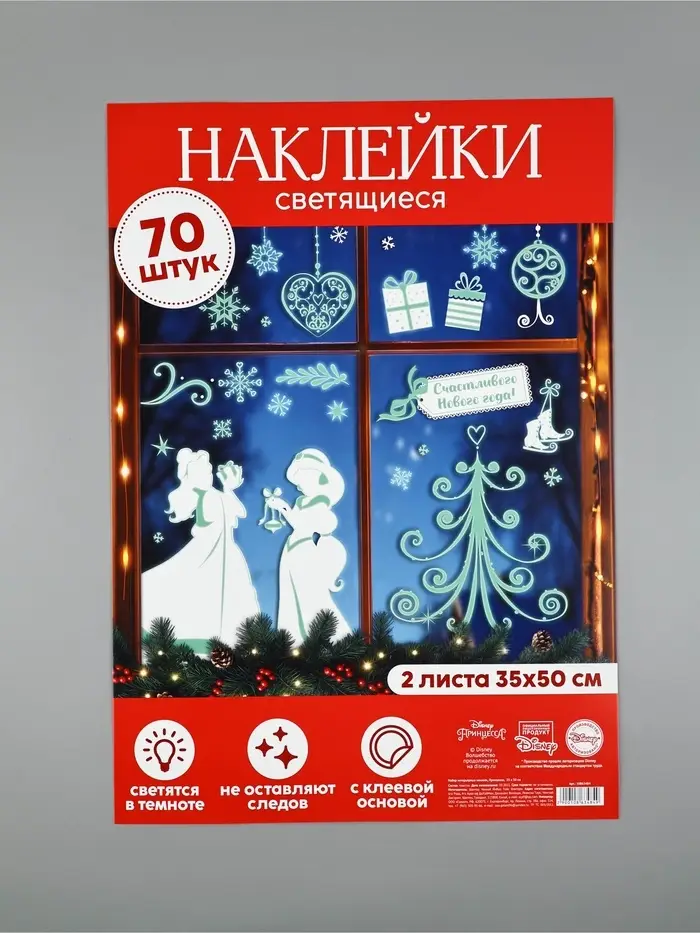 Виниловые наклейки «Новогодние», со светящимся слоем, 35 × 50 см, 2 листа