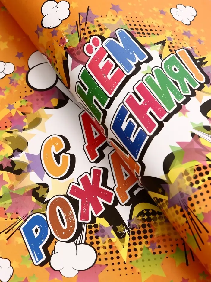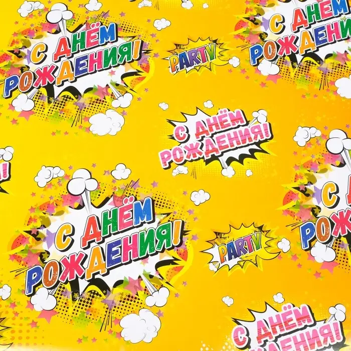 Бумага упаковочная глянцевая «С днем рождения!», 40×60 см МИКС