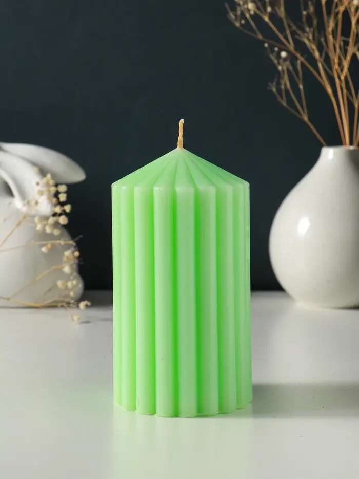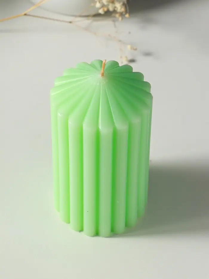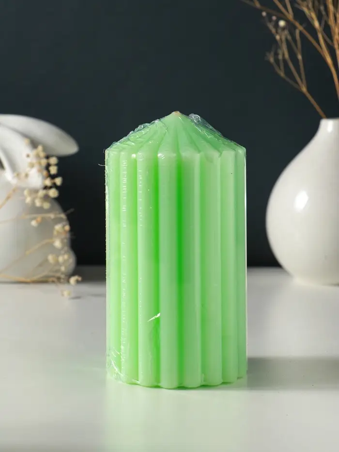 Свеча-цилиндр 7х14 см, 370 гр, рифлёная, мята