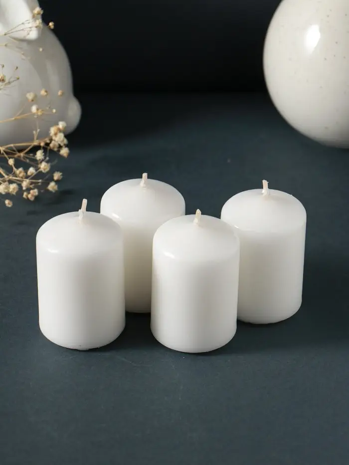 Свеча-цилиндр 4х6 см, 70 гр (набор 4 шт) белый
