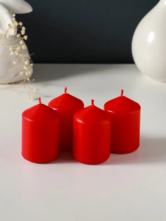 Свеча-цилиндр 4х6 см, 70 гр (набор 4 шт) красный