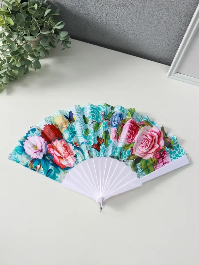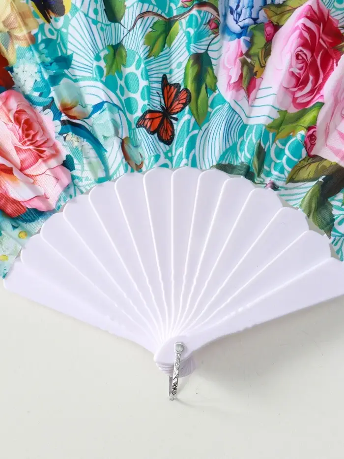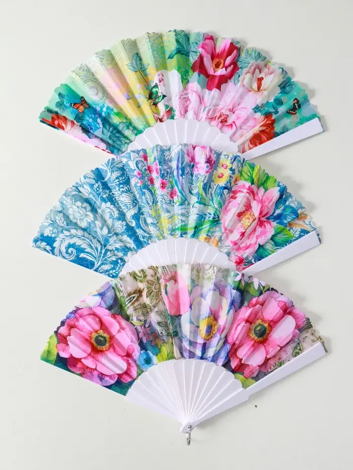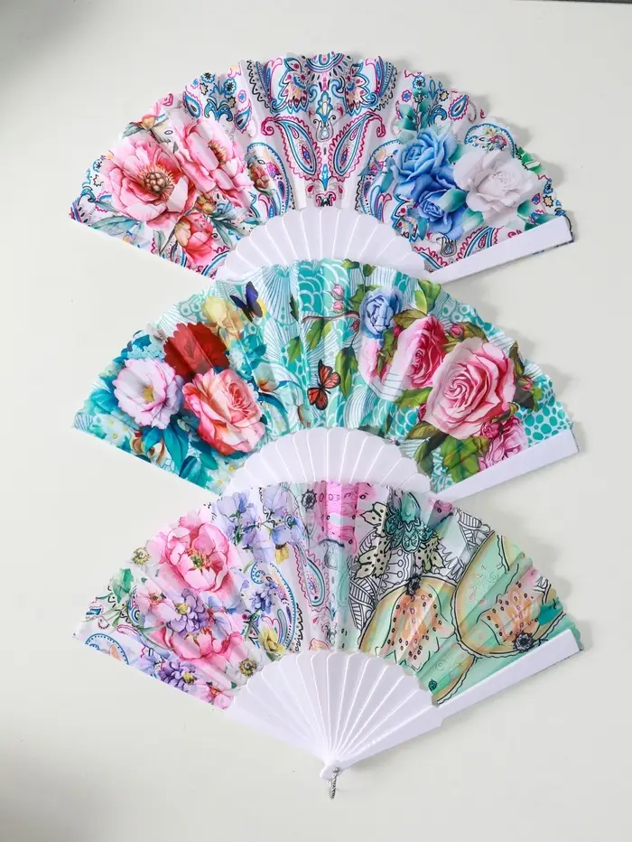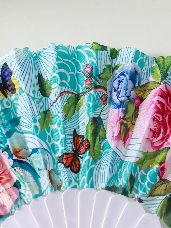 Веер пластик, текстиль "Цветы и узоры" МИКС широкие лопасти, золото 23 см
