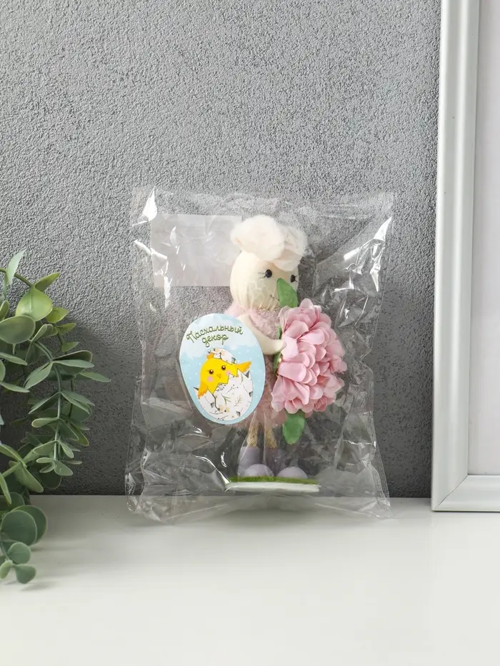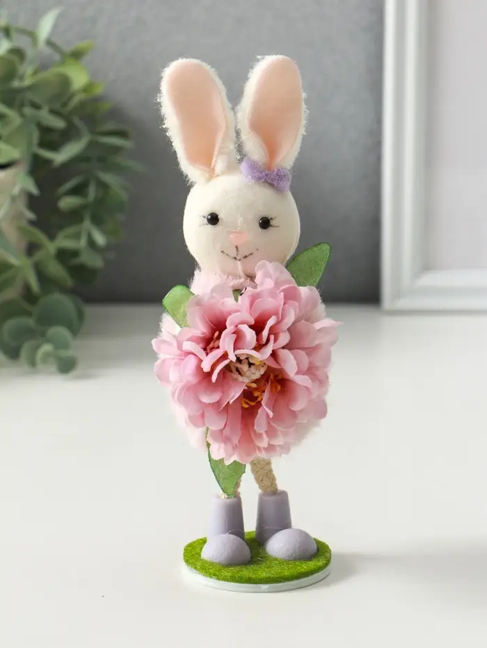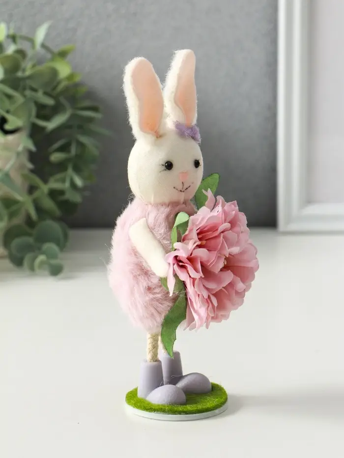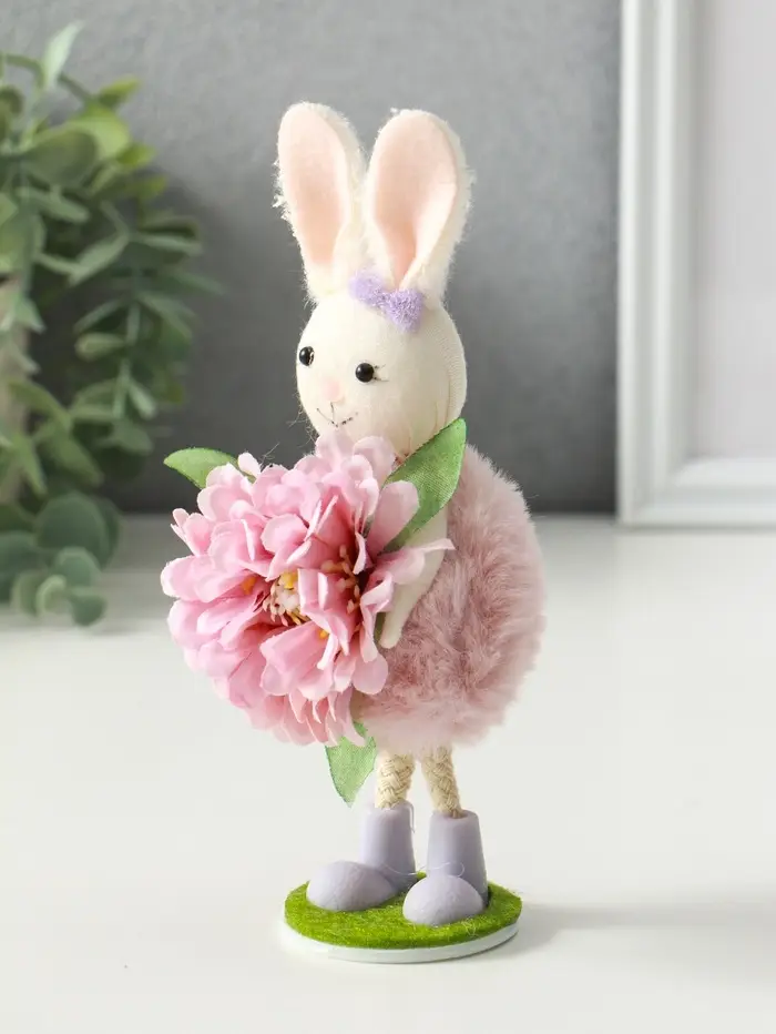 Сувенир пасхальный "Зайка в платьице с бутоном пиона в лапках" 5,5х5х19 см