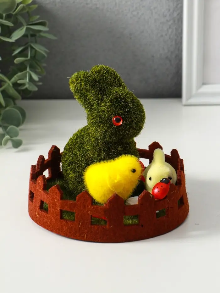 Сувенир пасхальный "Зайчик с цыплятами на лужайке с забором" 12,5х12,5х10,5 см