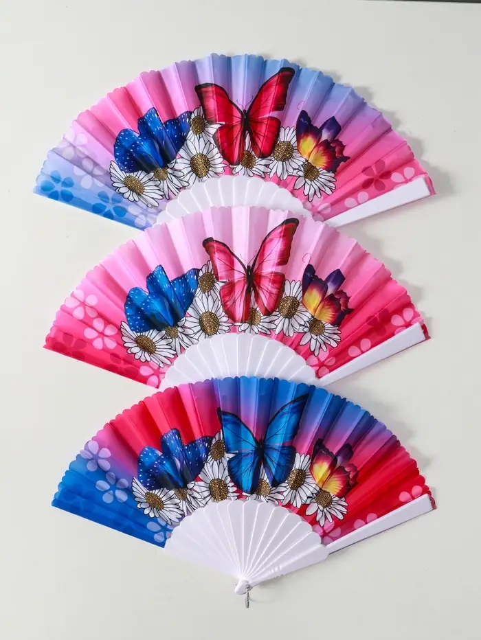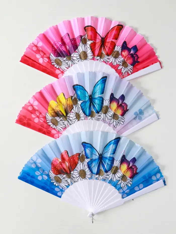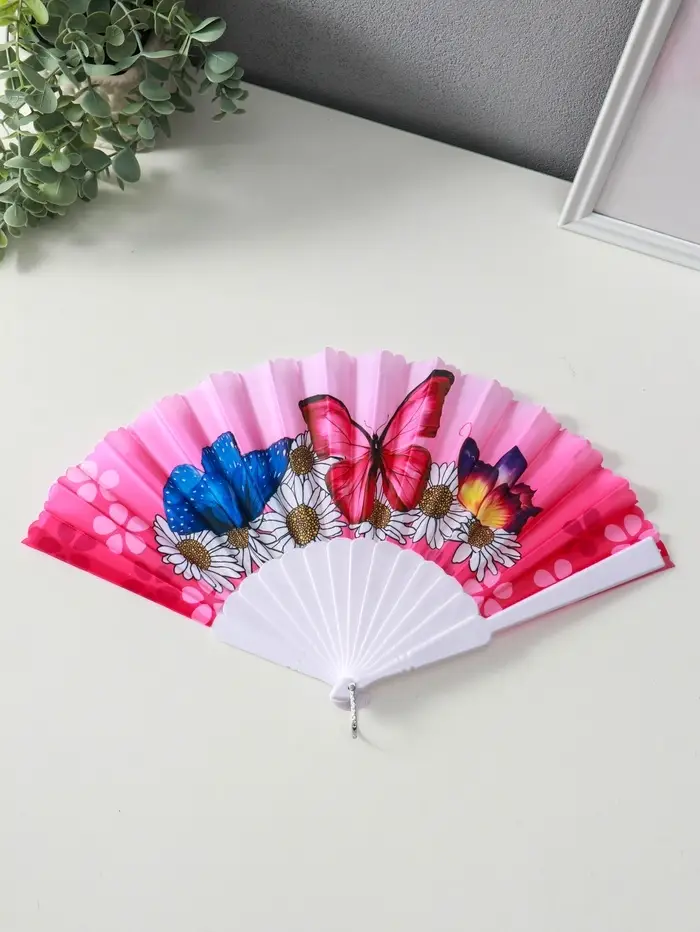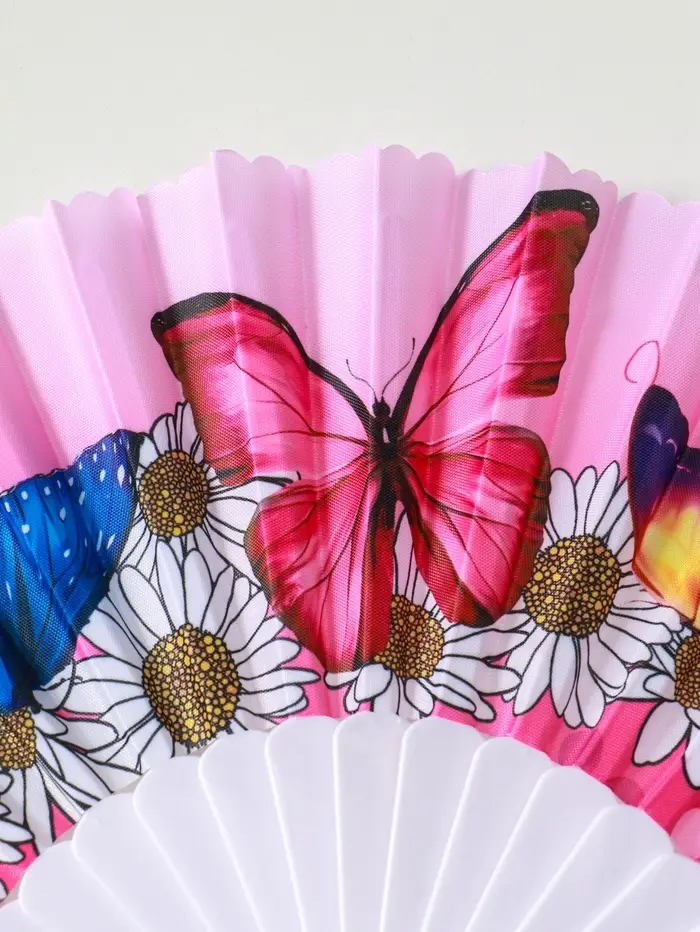 Веер пластик, текстиль "Ромашки и бабочки" МИКС широкие лопасти 23 см
