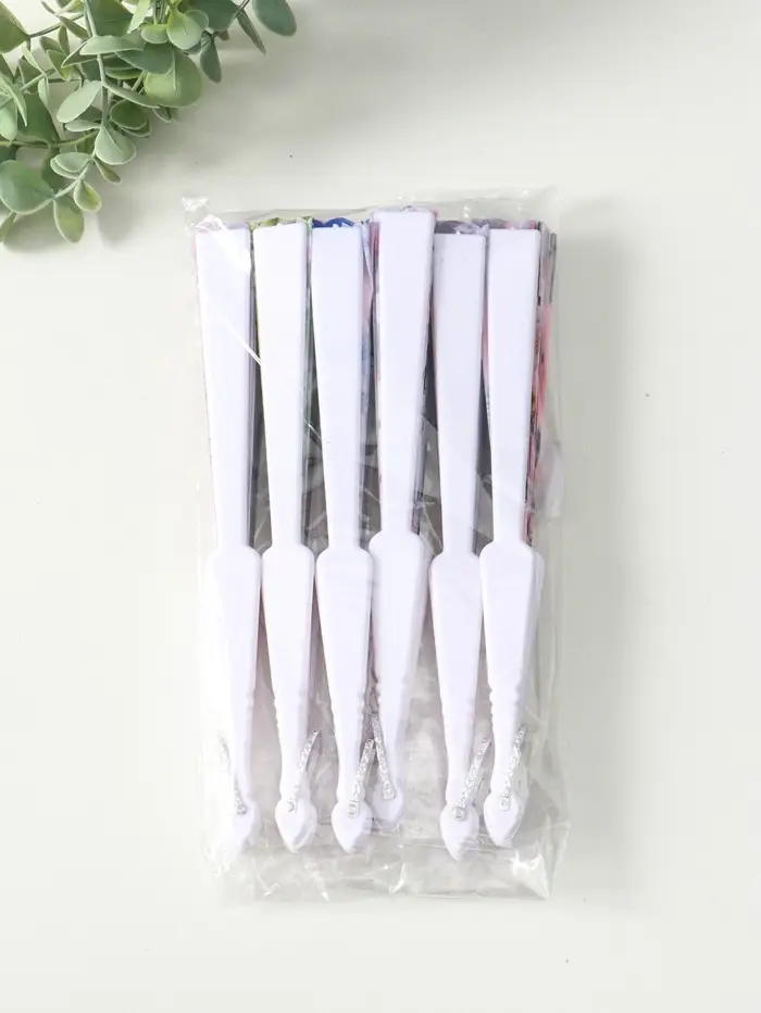 Веер пластик, текстиль "Кошечки и цветы" МИКС широкие лопасти 23 см