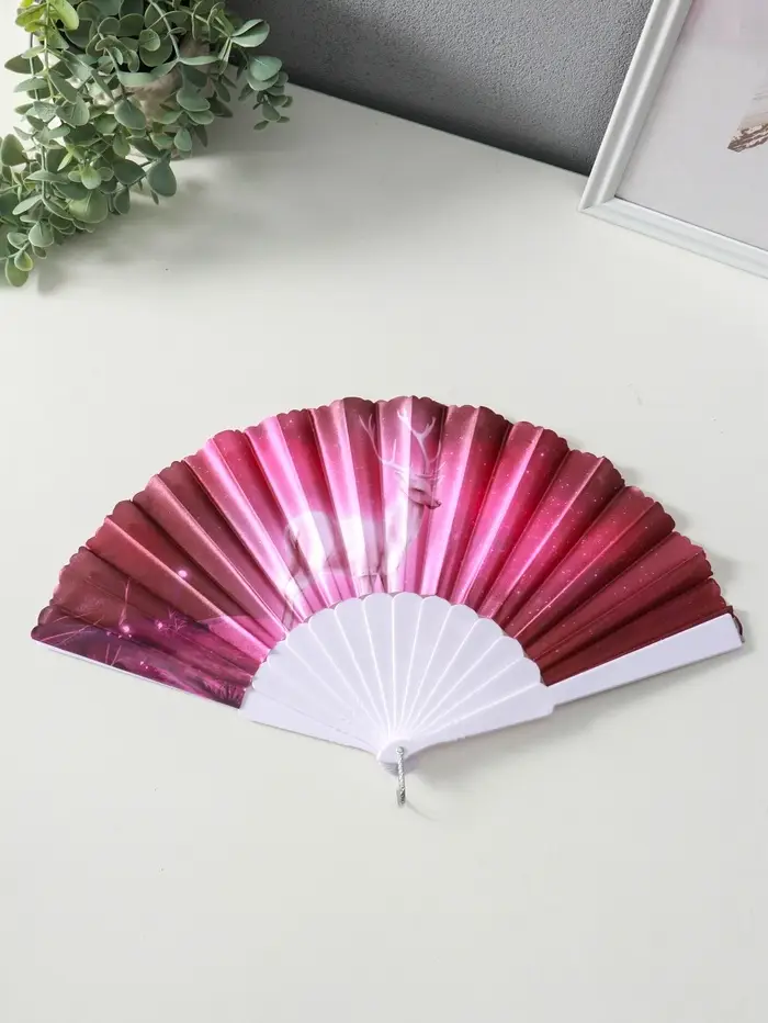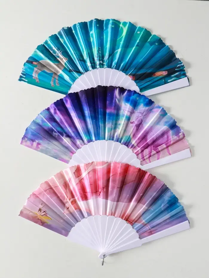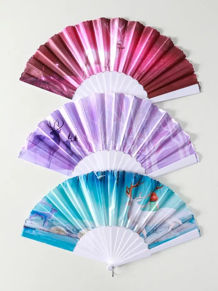 Веер пластик, текстиль "Олени" МИКС широкие лопасти 23 см