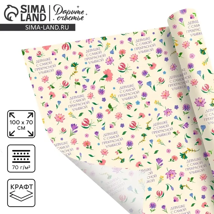 Бумага упаковочная крафтовая «Девушке», 70 × 100 см