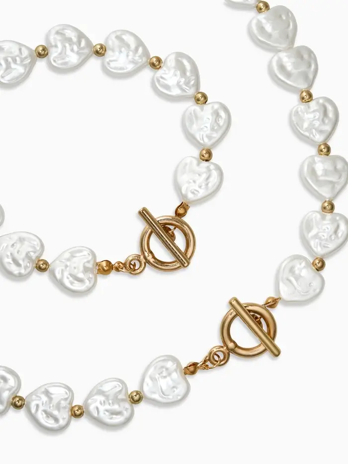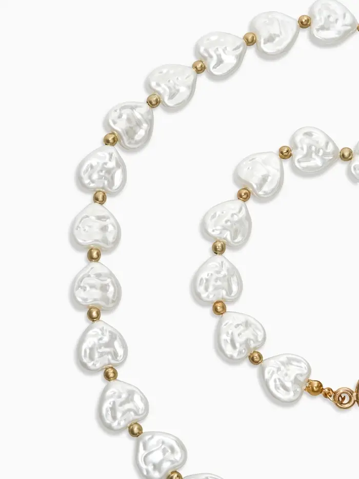 Набор 2 пред-та: бусы,браслет "Жемчуг барочный", сердечки, 40/18см, цвет белый в золоте
