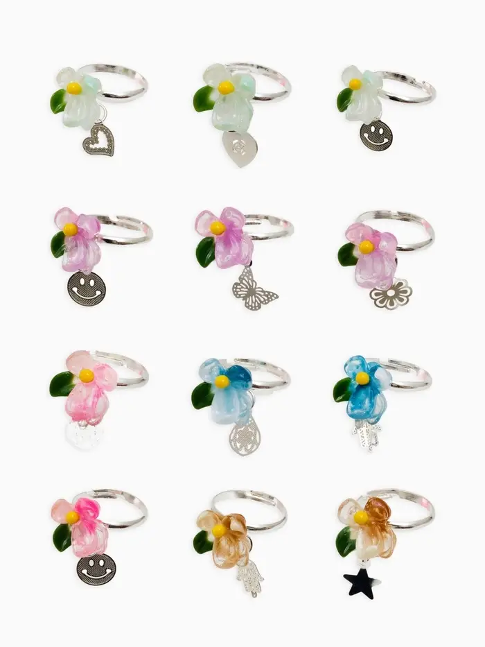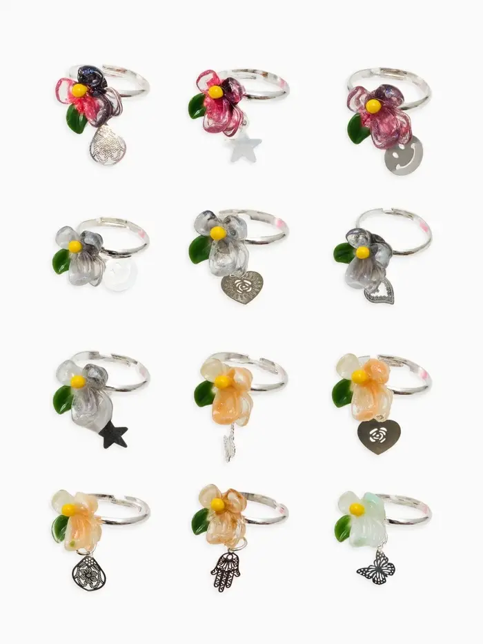 Кольцо «Выбражулька» цветок с подвеской, МИКС, безразмерное (фас. 36 шт.)