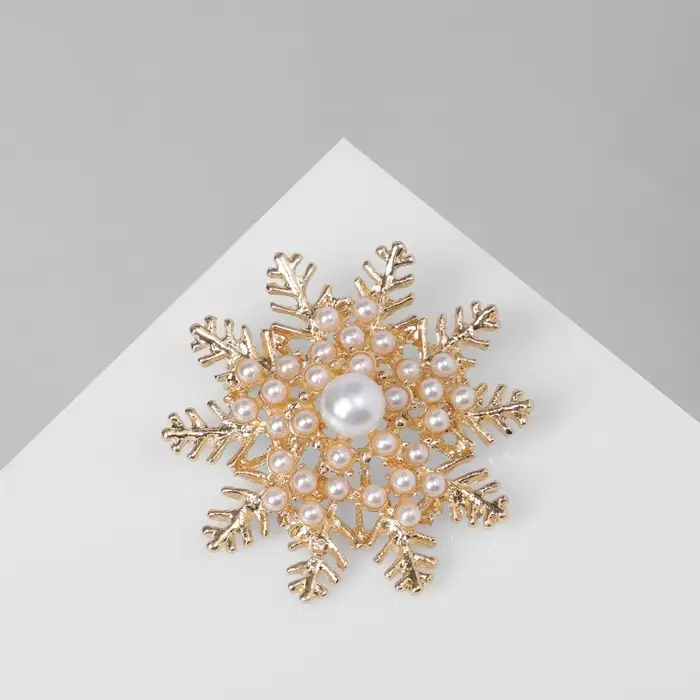 Брошь «Снежинка» роскошная, цвет белый в золоте