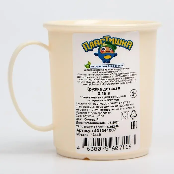Выбираете первую кружку для малыша? Данное пластиковое изделие обладает лёгким весом и не бьётся. Оно имеет округлые края и удобную ручку.