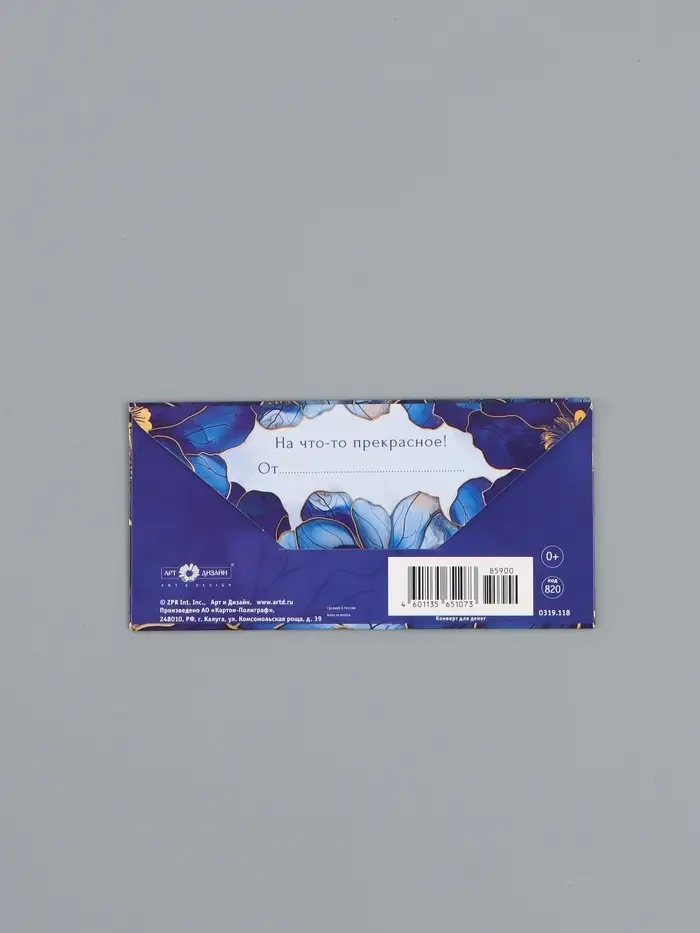 Конверт для денег «В день рождения», синие цветы, 16,5 х 8 см