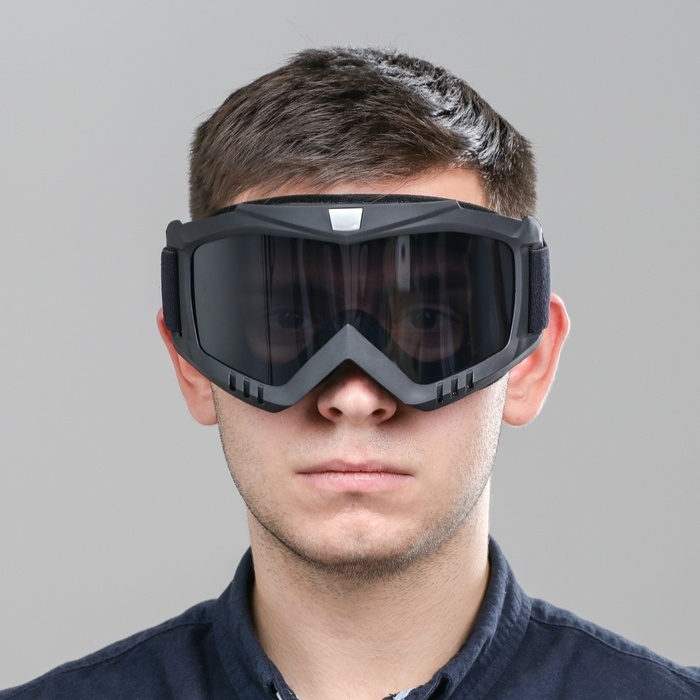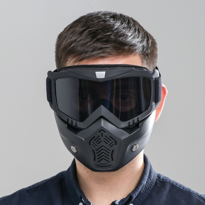 Очки-маска для езды на мототехнике, разборные, стекло с затемнением, черные