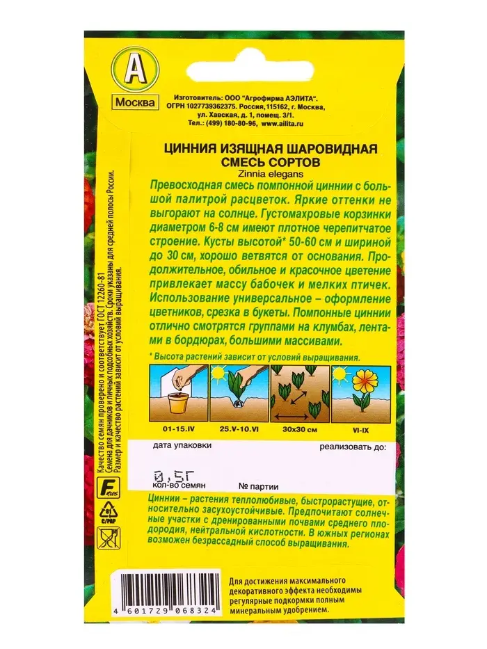 Набор семян Цинния Шаровидная, смесь окрасок, О, 5 шт.