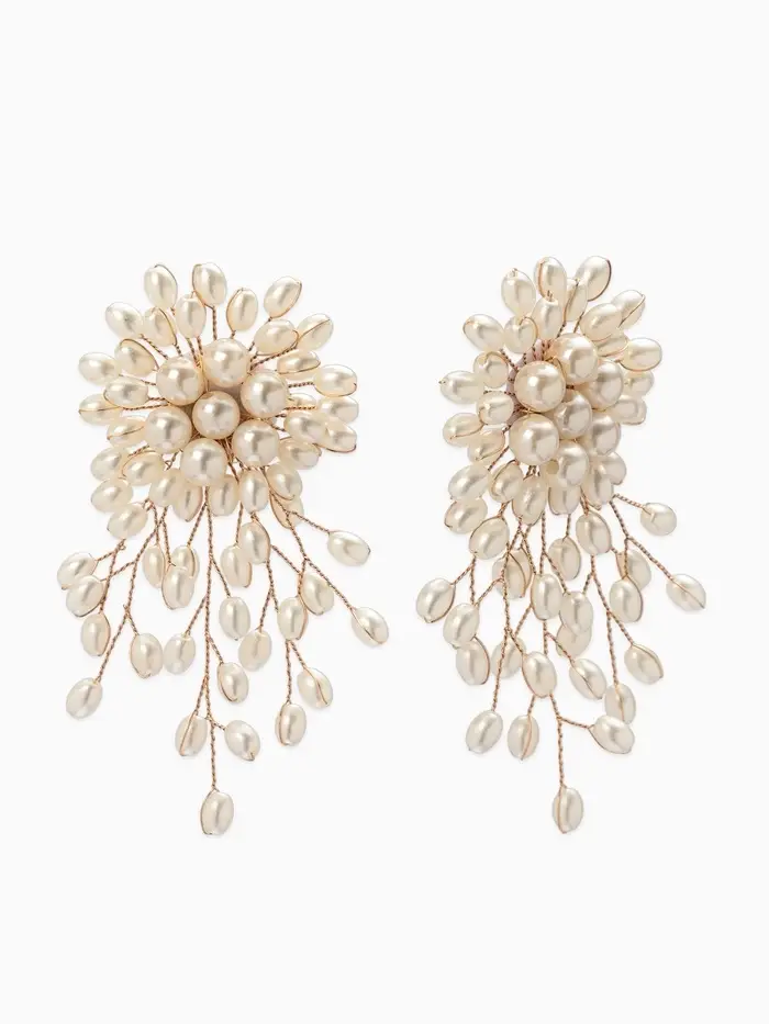 Серьги жемчуг "Россыпь в цветке", цвет белый в золоте