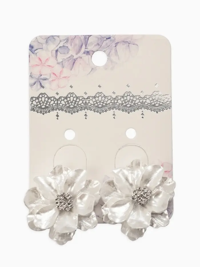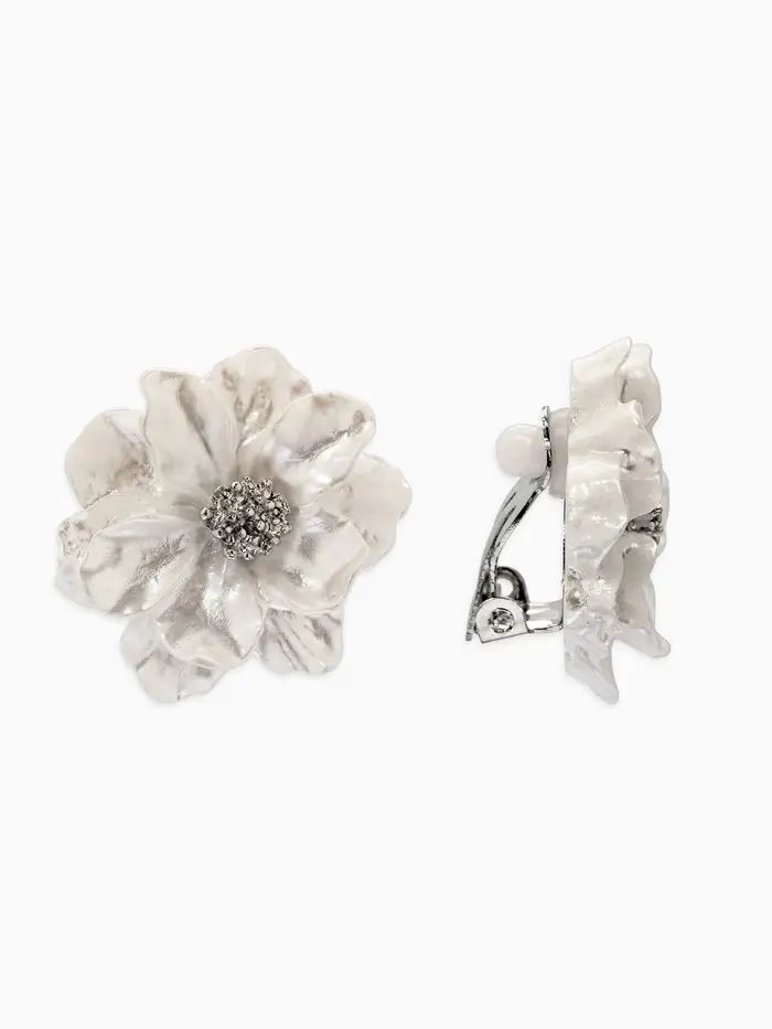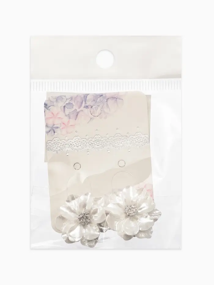 Клипсы "Цветочки" цвет белый в серебре