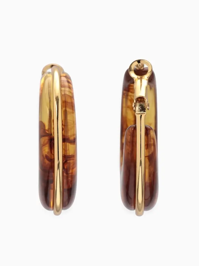 Серьги-кольца акрил "Тренд", цвет янтарный в золоте