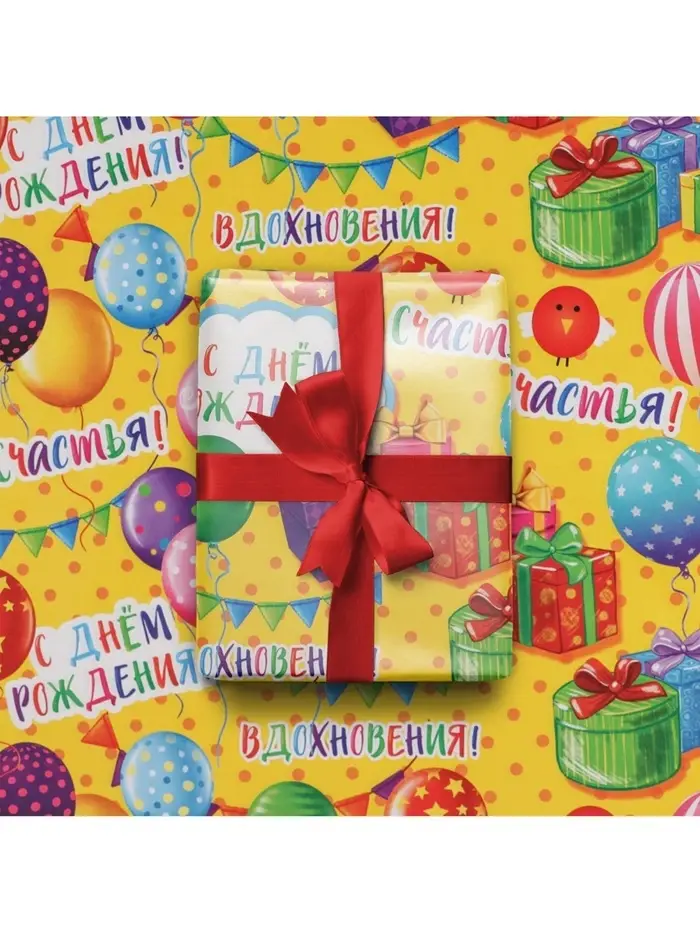 Бумага упаковочная глянцевая «С днём рождения!», 70 х 100 см
