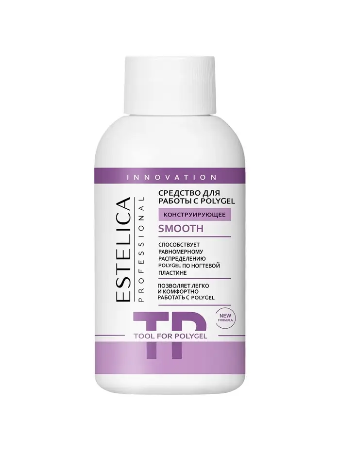 ESTELICA PROFESSIONAL SMOOTH, конструирующая жидкость для полигеля 100 мл (20 шт.) — инновационная жидкость, предназначенная для разглаживания и придания формы полигелю (акригелю) при моделировании ногтей. Средство предотвращает сколы и отслойки, обеспечивает лёгкое скольжение кисти, не повреждая её ворс.