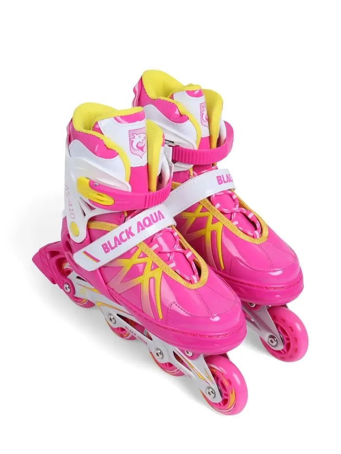 Коньки раздвижные BlackAqua, р. 35-38, для фитнеса, с роликовой платформой, цвет фуксия