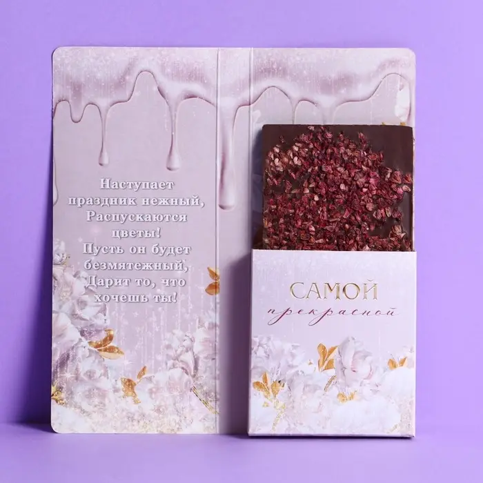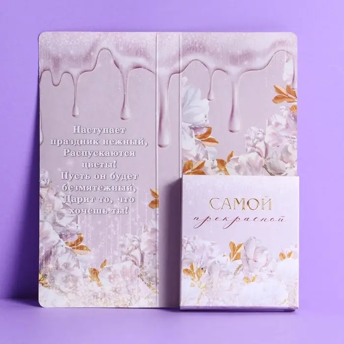 Открытка с местом под шоколад «C 8 Марта»