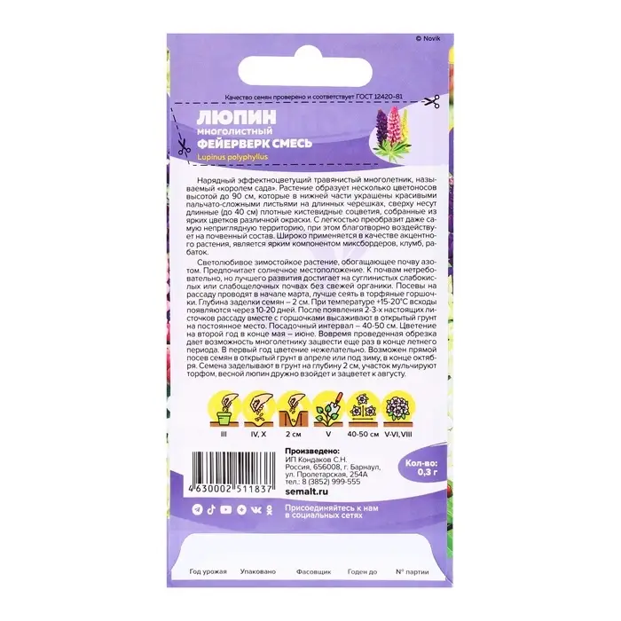 Семена Люпин "Фейерверк", ц/п, 0,3 гр.