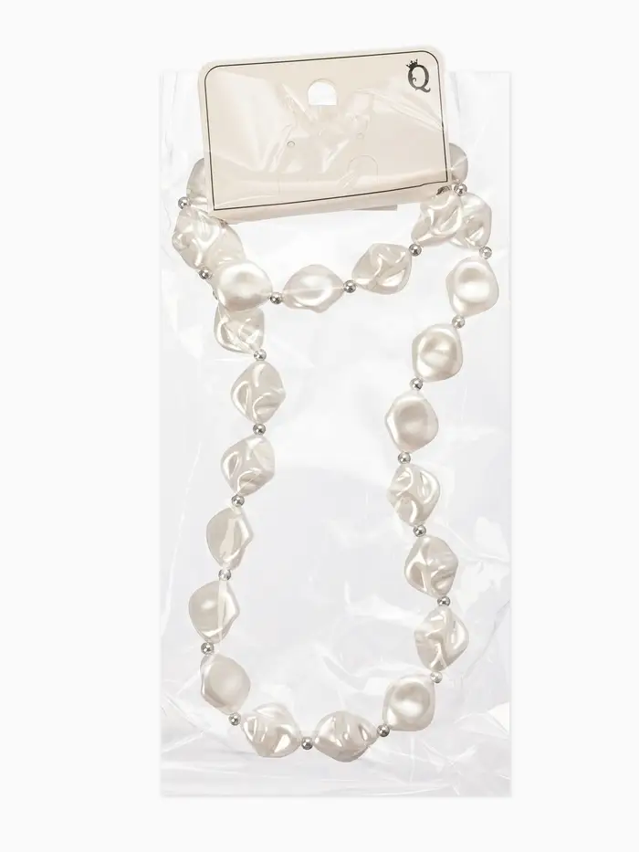 Набор 2 пред-та: бусы,браслет "Жемчуг барочный", ромб. 40/18см, цвет белый в серебре
