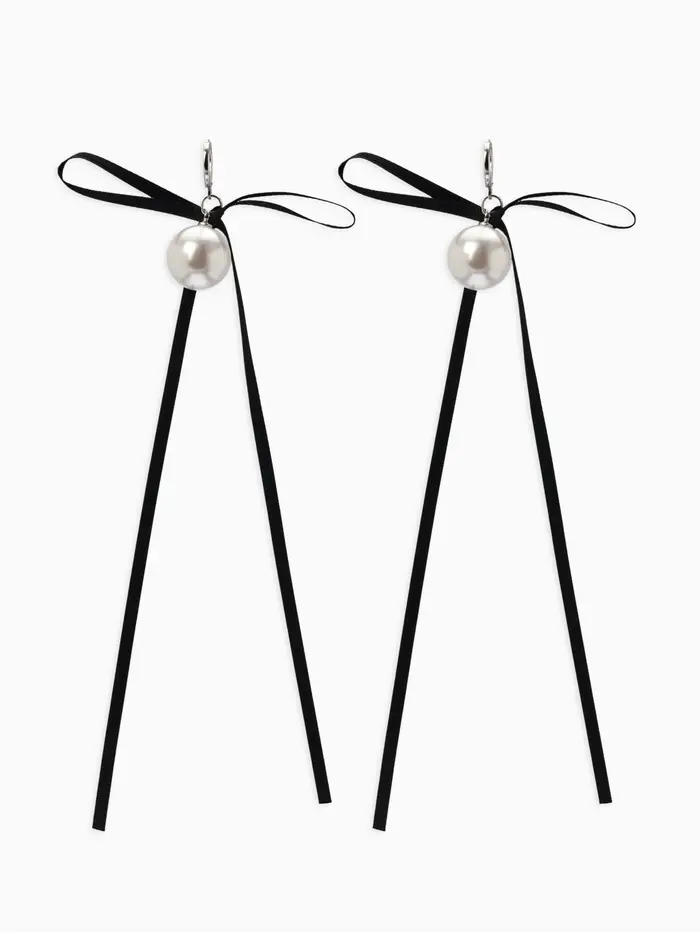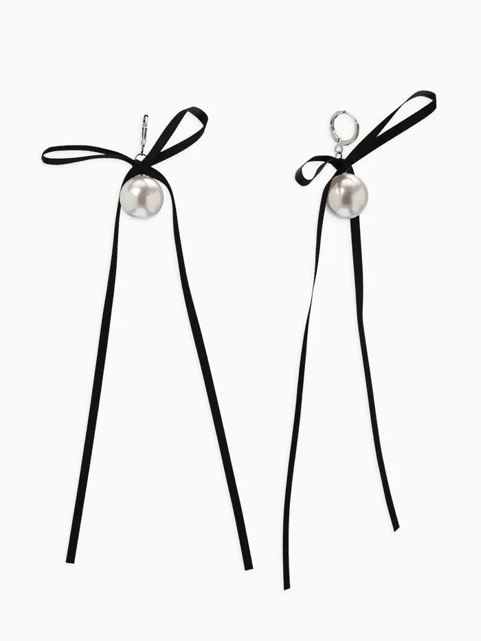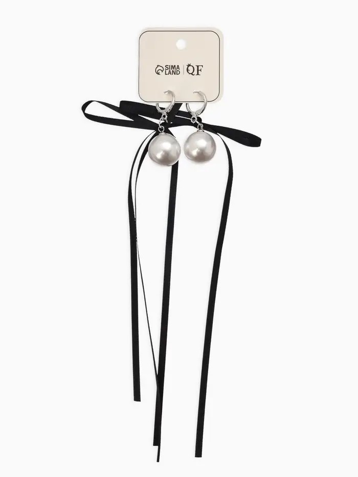 Серьги жемчуг "Бусина с бантиком", №16, цвет бело-чёрный в серебре