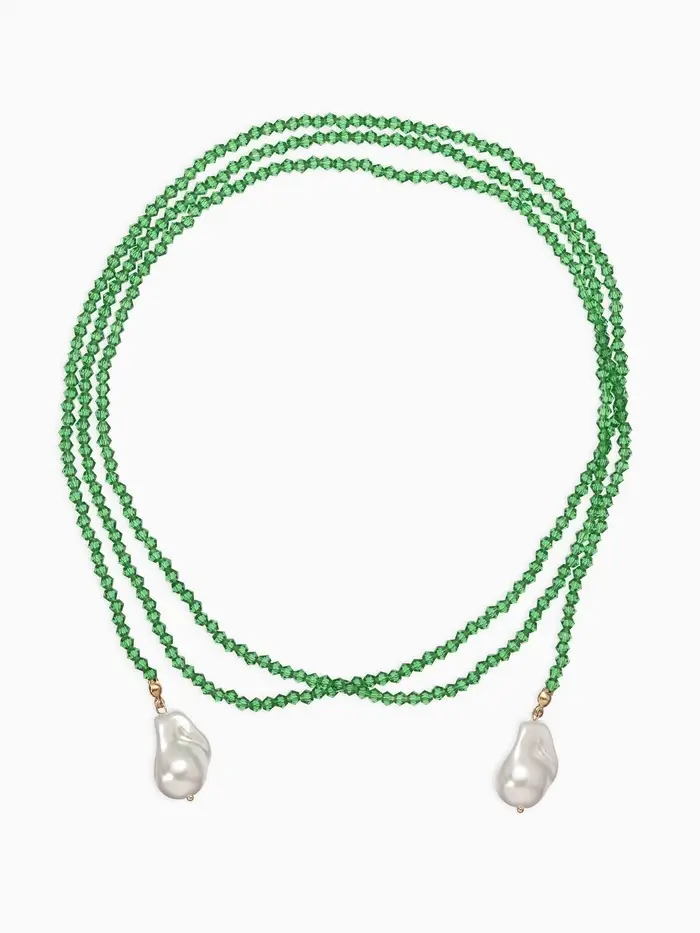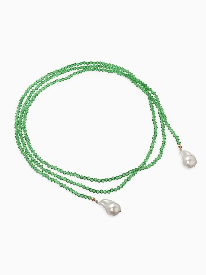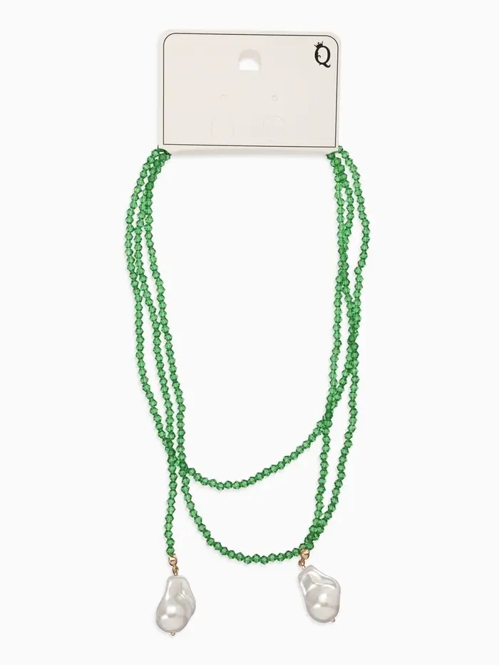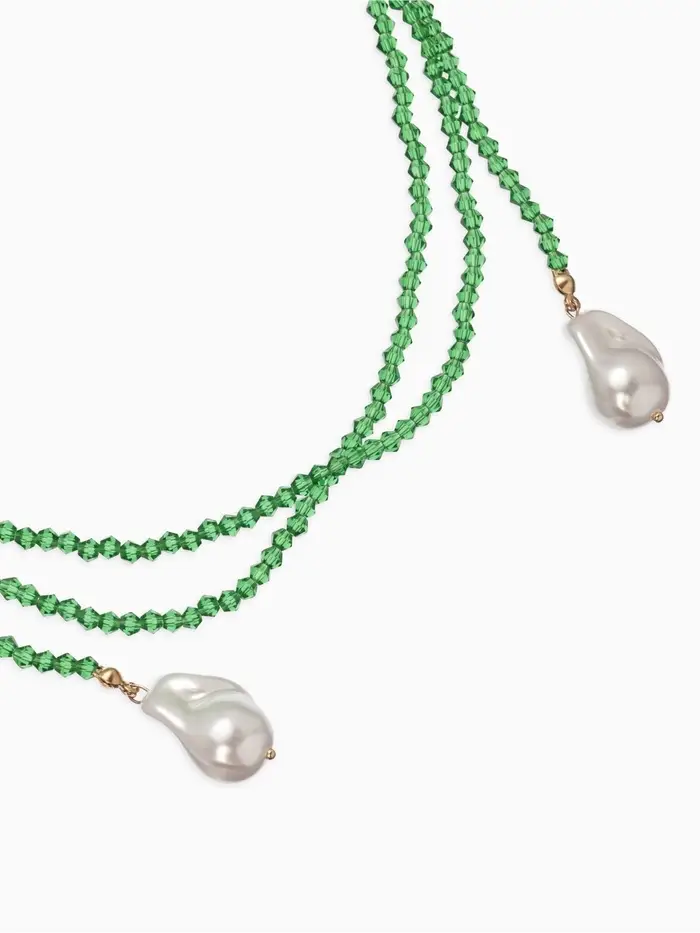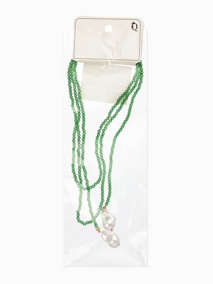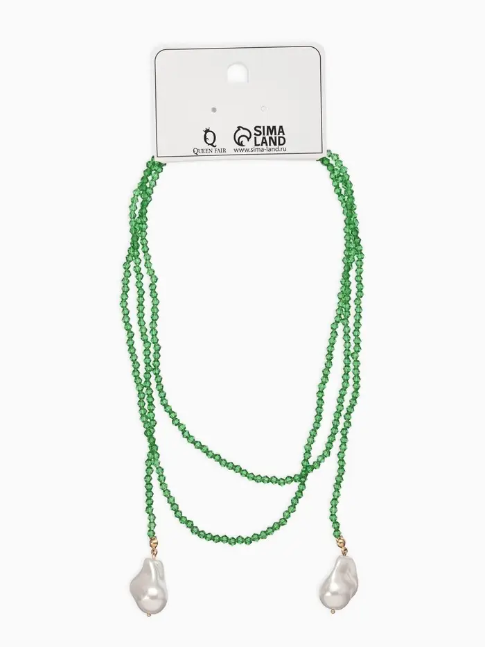 Бусы "Нить стекла" с подвесами жемчуг, L=120см №2, цвет бело-зелёный