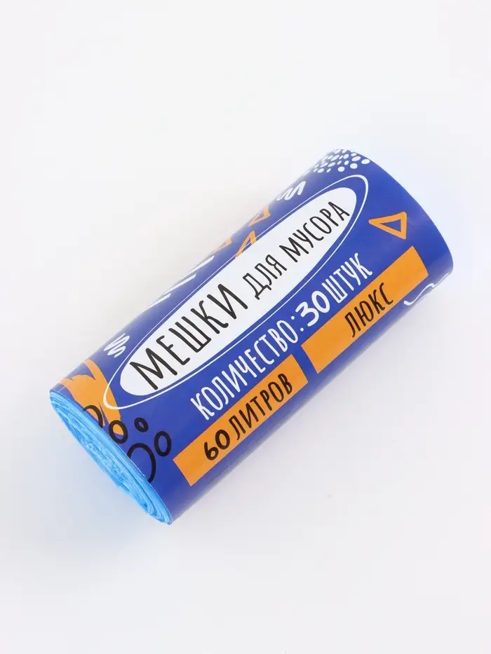 Мешки для мусора в рулоне 60 л, голубые,ПНД, толщина 8 мкм, 30 шт