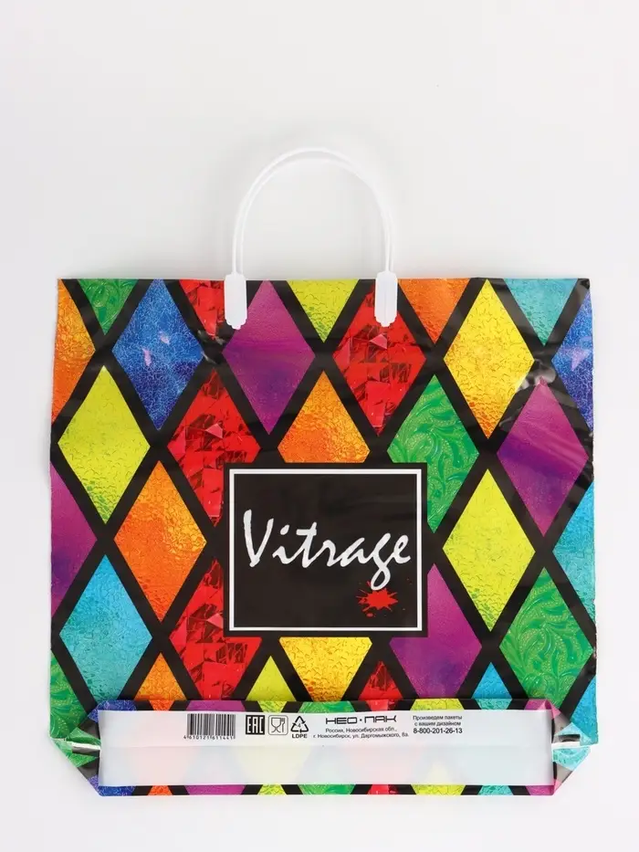 Пакет "Витраж, полиэтиленовый, пластиковая ручка 37х35 см 90 мкм