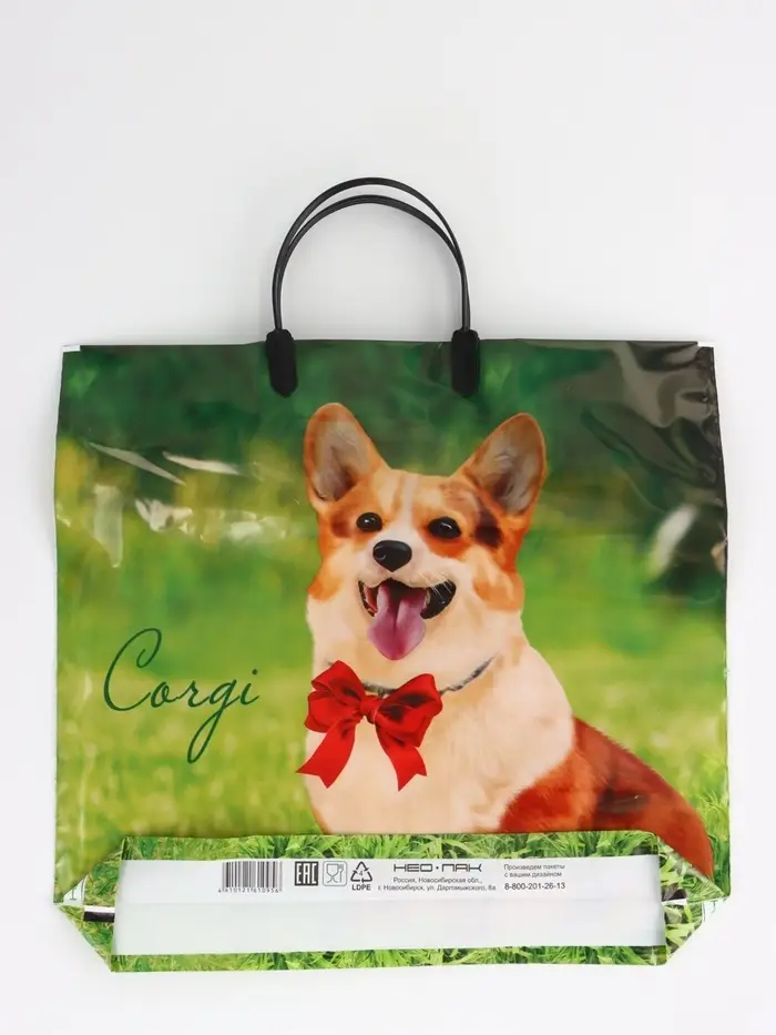 Пакет "Корги, полиэтиленовый, пластиковая ручка 37х35 см 90 мкм