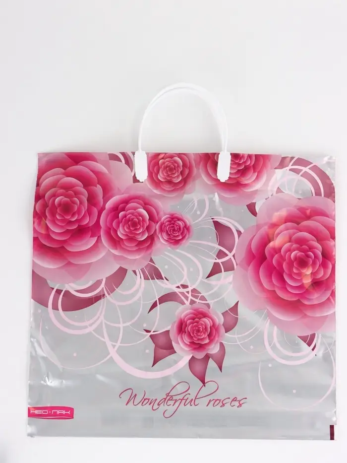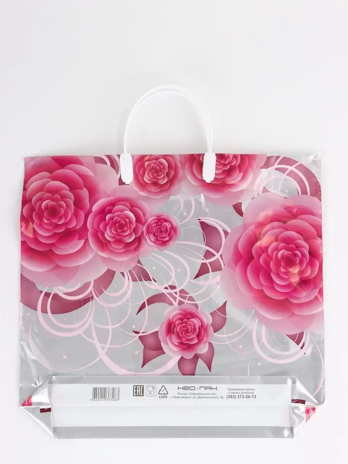 Пакет "Роза на серебре, полиэтиленовый, пластиковая ручка 37х35 см 90 мкм