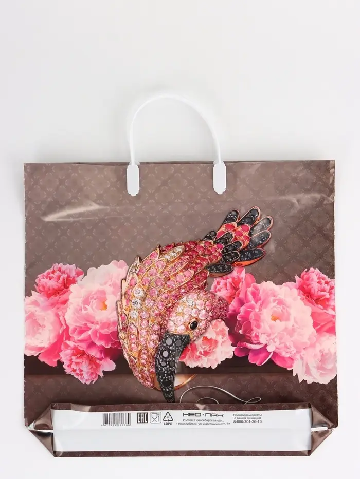 Пакет "Розовый фламинго, полиэтиленовый, пластиковая ручка 37х35 см 90 мкм 1095891
