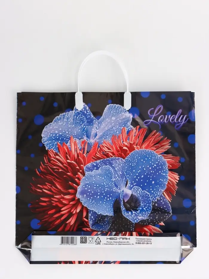 Пакет "Цветочная фантазия, полиэтиленовый, пластиковая ручка 37х35 см 90 мкм 10958