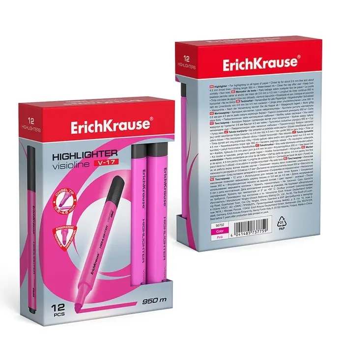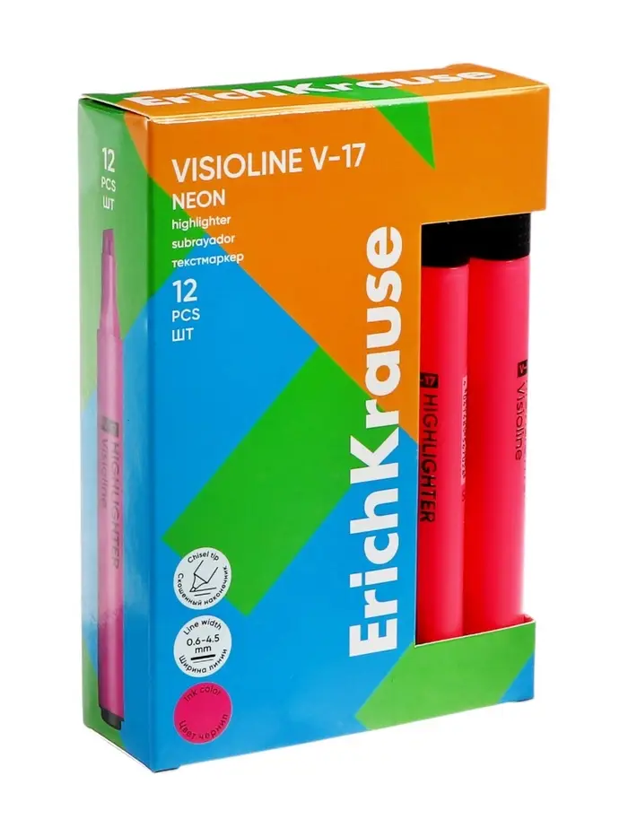 Маркер текстовыделитель ErichKrause Visioline V-17, 0.6-4.5 мм, чернила на водной основе, розовый