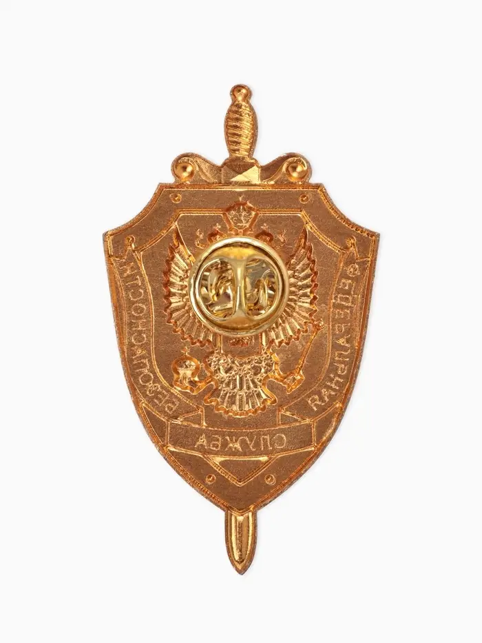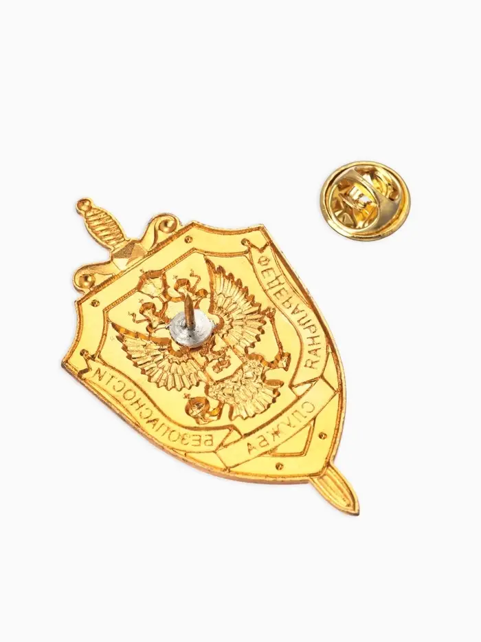 Значок "ФСБ" герб, голубо-красный в золоте